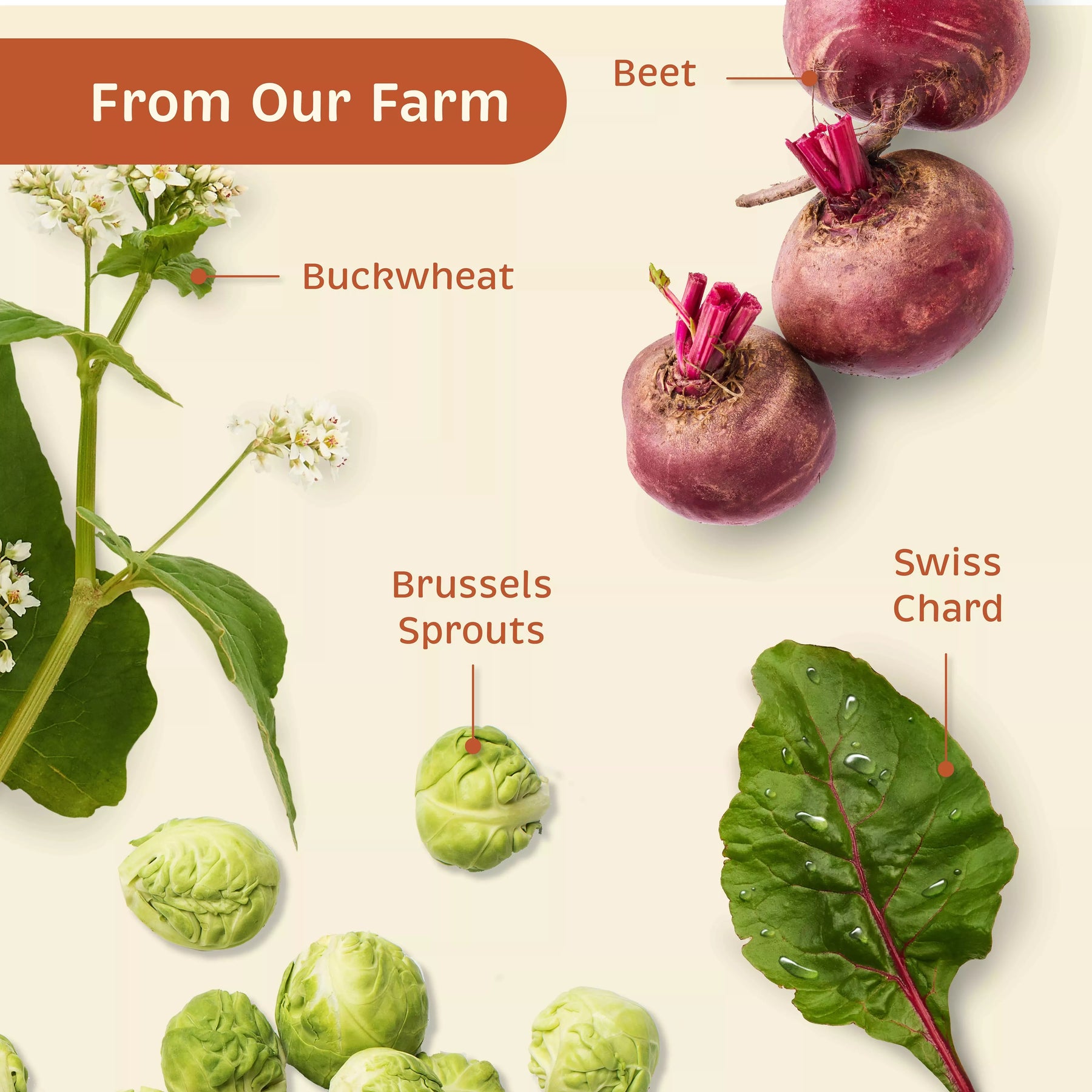 Organic Brussels Sprouts, Swiss Chard, Buckwheat & Beets Grown on Our Farm